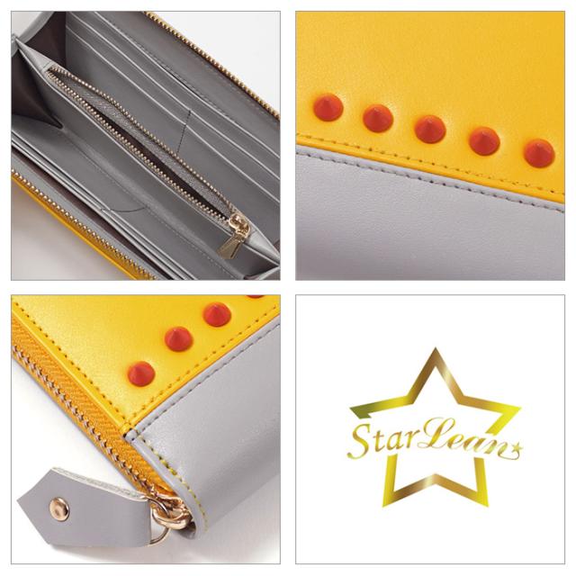 スターリアン StarLean★ スタッズラウンドファスナー長財布 財布 ウォレット スター 星 メンズ レディース イエロー(GRAY×YELLOW)
