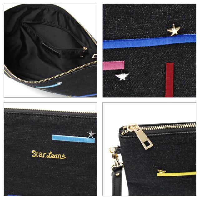スターリアン StarLean★ デニム地 カラフルライン 刺繍 クラッチバッグ バッグ メンズ レディース