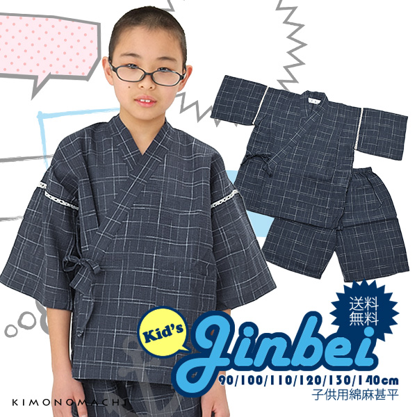 綿麻素材の爽やかで着心地の良い男の子用甚平です。90cm〜140cmの全6サイズです。ウエスト部分はゴムでできており、ゆったりとした作りとなっています。夏のお祭りにはもちろん、綿麻素材で、綿の柔らかさに加え、麻のサラリとした着心地のよい快適な甚平です。