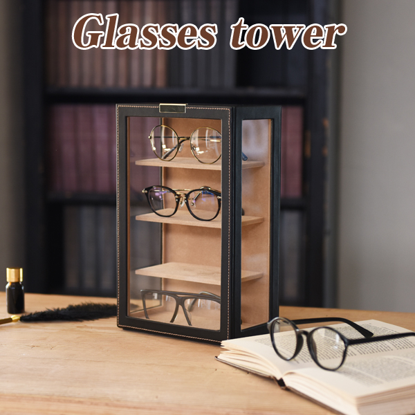 メガネタワー(メンズ,眼鏡,4本収納,収納ケース,メガネコレクションケース,縦型,ショップ風,インテリア,ギフト,贈り物)