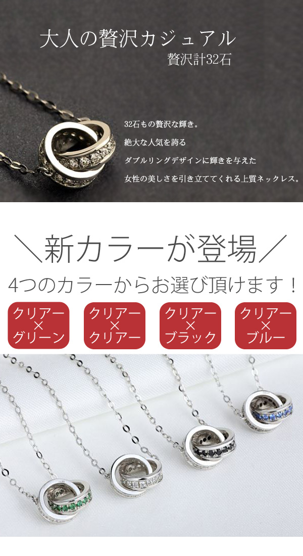 ネックレス レディース 贅沢計32石 ダブルリング エタニティ クリスマスプレゼント 女性 プラチナ仕上げ シルバー925 女性 クリスマスプレゼント 彼女 嫁 妻 娘 ギフトラッピング対応 クリスマス_wp