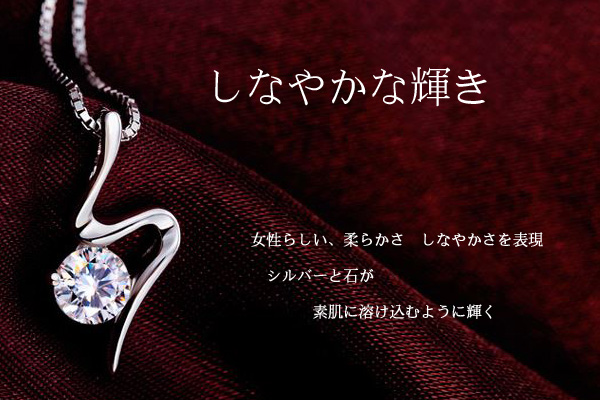 大粒 曲線 ネックレス 一粒 レディース クリスマスプレゼント 女性 プラチナ仕上げ シルバー925 女性 クリスマスプレゼント 彼女 嫁 妻 娘 ギフトラッピング対応 クリスマス_wp