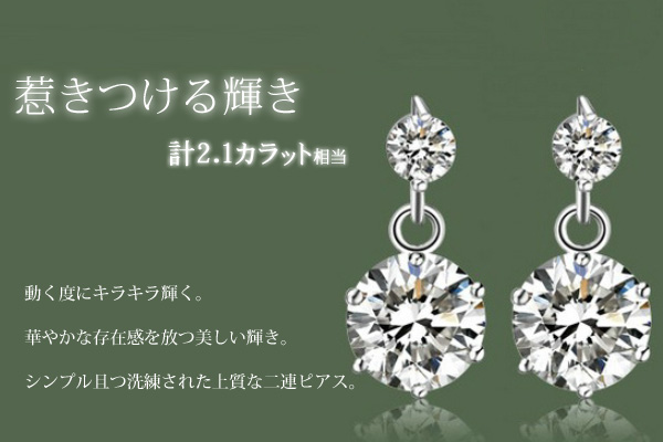 2連 ピアス レディース 揺れる 豪華 2粒連 クリスマスプレゼント 女性 プラチナ仕上 シルバー アクセサリー ジュエリー 誕生日 彼女 嫁 妻 娘 母 ギフトラッピング対応 クリスマス_wp