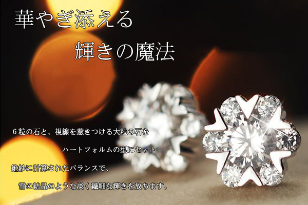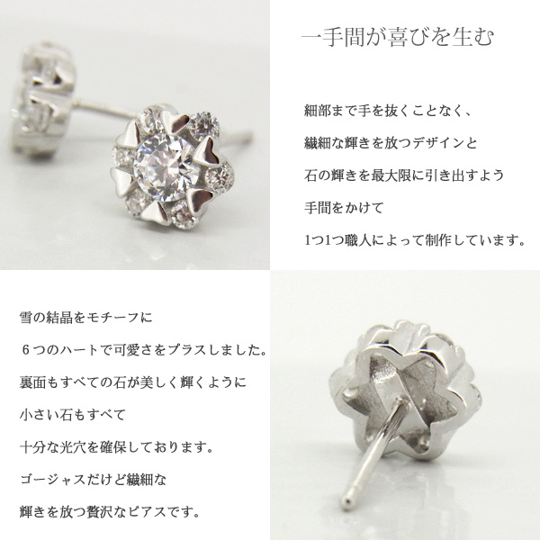 花 結晶 雪の結晶 ピアス レディース 豪華7粒 ハート 結晶 ピアス クリスマスプレゼント 女性 プラチナ仕上げ シルバー925 女性 クリスマスプレゼント 彼女 嫁 妻 娘 母 ギフトラッピング対応 クリスマス_wp