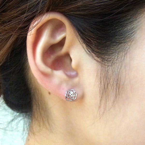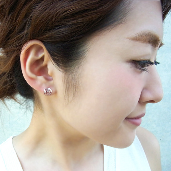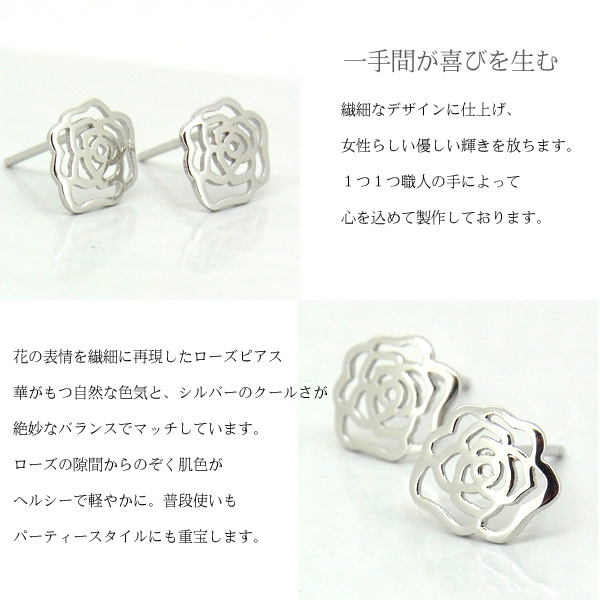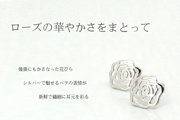 ローズ ピアス バラ 薔薇 花 フラワー クリスマスプレゼント 女性 プラチナ仕上げ シルバー925 女性 嫁 妻 娘 母 ギフトラッピング対応 クリスマス_wp