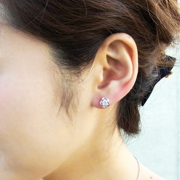 ピアス レディース 豪華 花 一粒 ピアス クリスマスプレゼント 女性 レディース プラチナ仕上 シルバー フラワー 彼女 母 ギフトラッピング対応 彼女 妻 クリスマス_wp
