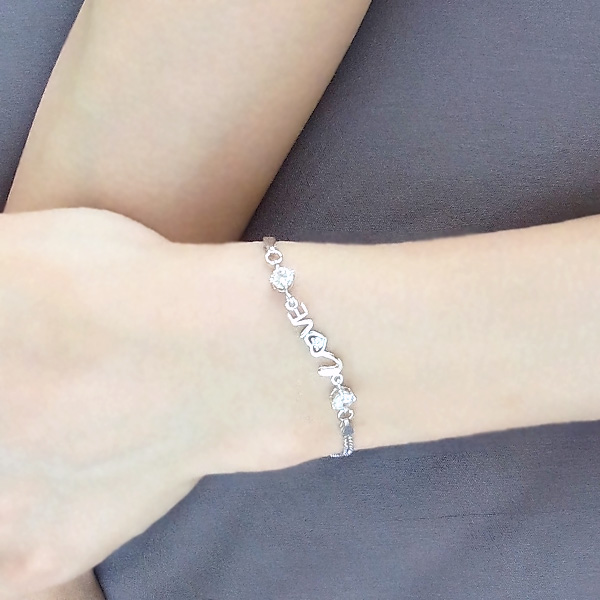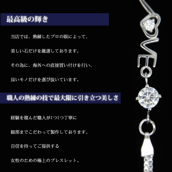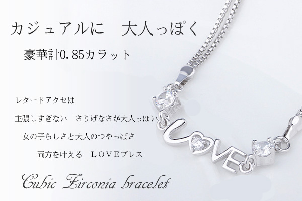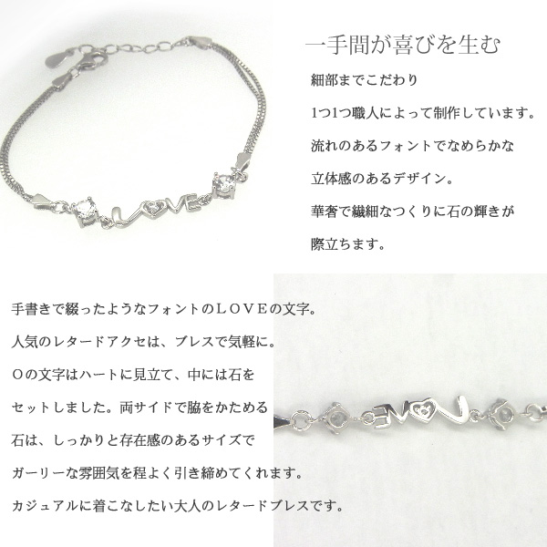 ブレスレット レディース 豪華 LOVE ラブ ハート クリスマスプレゼント 女性 プラチナ仕上げ シルバー925 ギフト 彼女 嫁 妻 娘 母 華奢 ギフトラッピング対応 クリスマス_wp