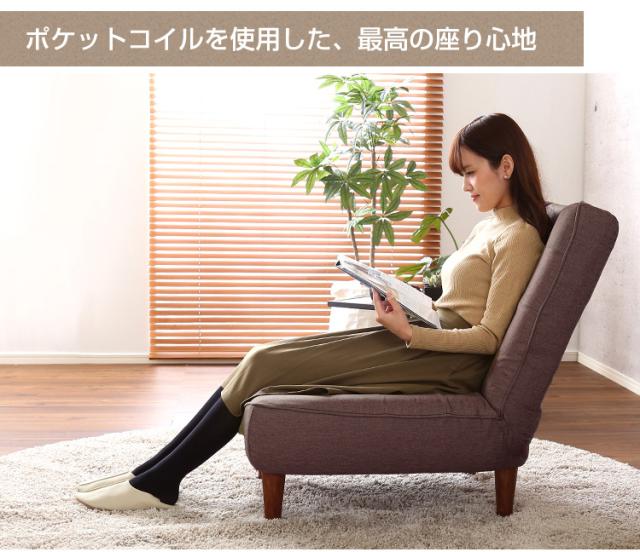 ハイバックソファー 1人掛け 布地 ローソファ ポケットコイル リクライニング 日本製