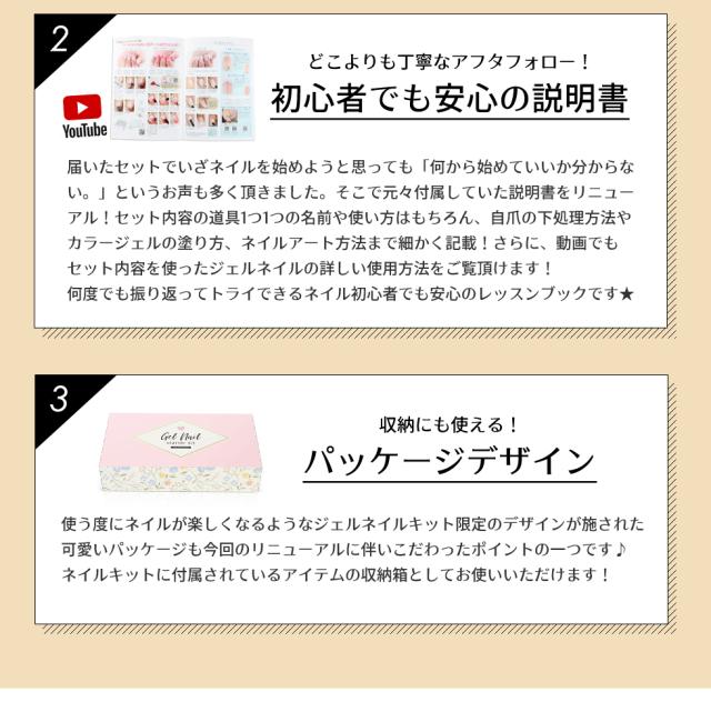 | 商品説明 | お客様の声を元に徹底的にセット内容を大改良!! ジェルネイルを始めるために必要なもの全部入り!! お家に届いてすぐに始められる♪ 290点セルフジェルネイルスターターキット 詳しい説明書なので ジェルネイルが初めての方でも安心して始められます。 |