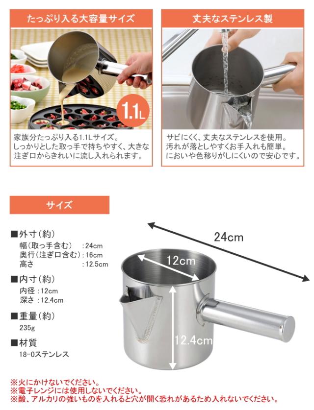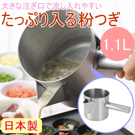 たっぷり入る粉つぎ 1.1L 34422 日本製 ステンレス 粉注ぎ そそぐ 注ぐ 注ぎやすい 生地 入れる 大容量 たこやき たこ焼き タコヤキ たこ焼 お好み焼き 道具 キッチン用品 調理道具 キッチングッズ タコパ 容器 下村企販