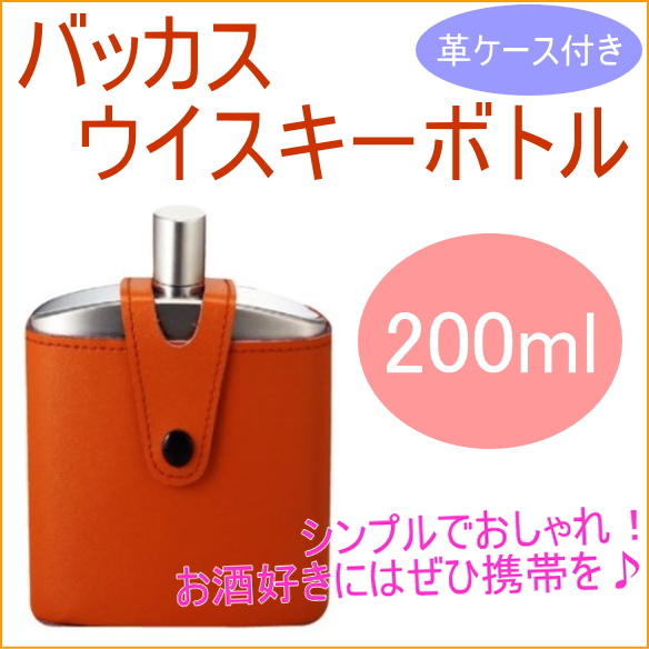 バッカス ウイスキーボトル 革ケース付き 200ml スキットル お酒 ウィスキー アウトドア 携帯 ボトル ステンレス 送料無料