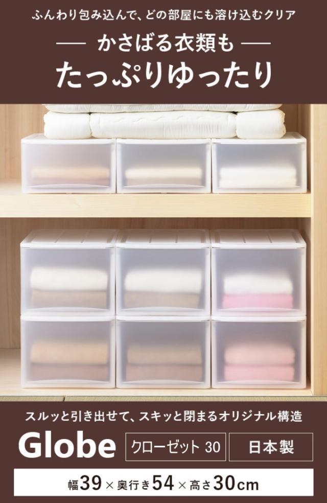 グローブ クローゼット用 収納ケース 深型 30 1個入 送料無料 日本製 収納ケース 収納ボックス 衣装ボックス ケース ボックス 収納 押入れ クローゼット 整理 整頓 引き出し 収納用品 クリア ホワイト サンカ SANKA Globe
