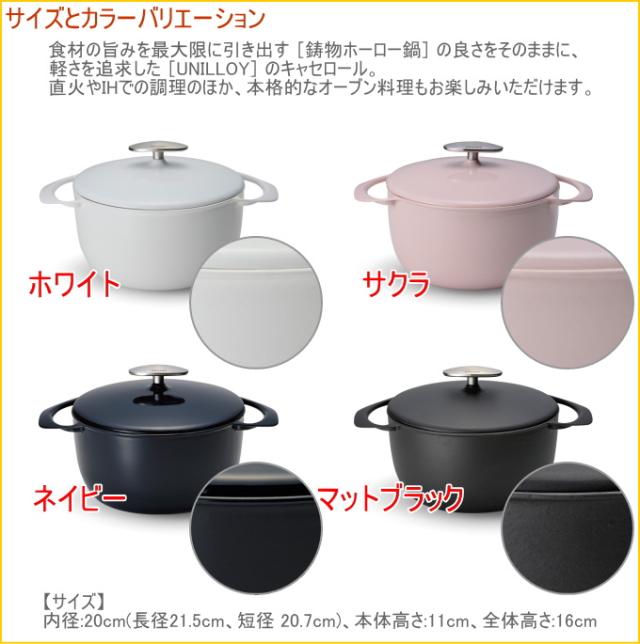 ユニロイ キャセロール20cm (EC-2000) 送料無料 日本製 IH対応 UNILLOY ホーロー お手入れ簡単 軽量