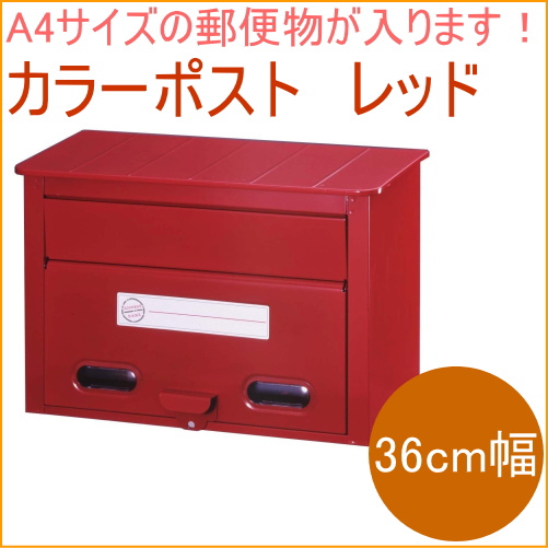 スチールカラーポスト レッド 360mm幅 (FH-30R) 日本製 郵便ポスト 郵便箱 郵便受け 新聞受け ストッカー 玄関