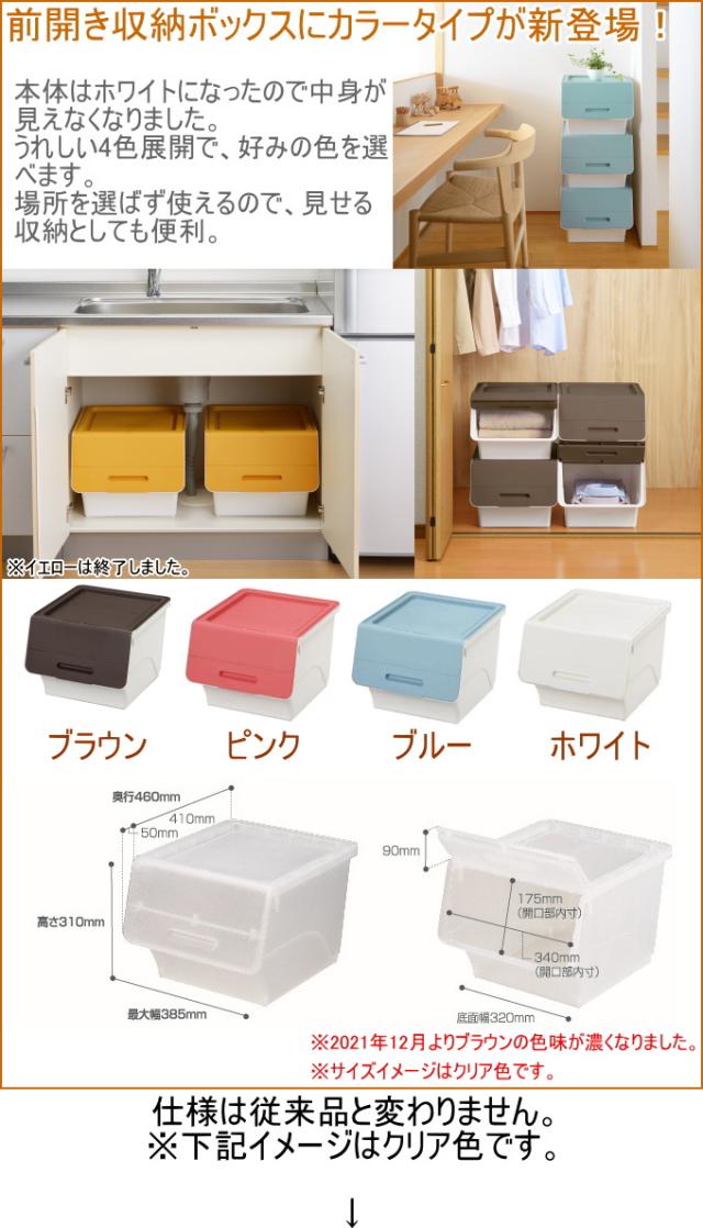 積み重ねても前開きなので出し入れがしやすい。 シンプルなデザインでキッチンやリビングなど様々なところで使えます。 フタが止まって出し入れ自由 広い開口部で出し入れしやすい ※カラータイプは本体がホワイトの為、中身が透けません。 ※2021年12月よりブラウンの色味が濃くなりました。 別売りのキャスターを使用できます。 アクティブキャスター(ACS-30) |