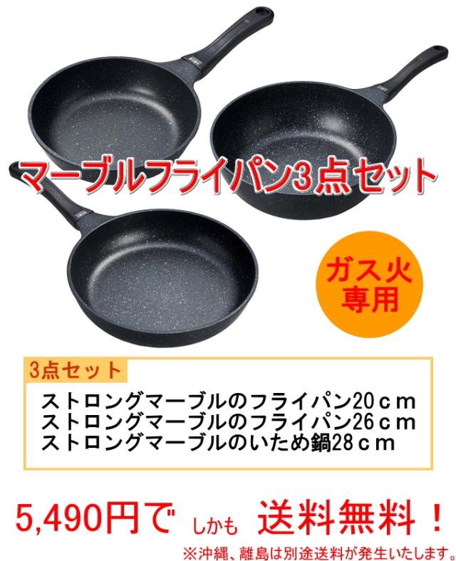 軽いね ストロングマーブル3点セット (HB-1223-5-9) ガス火専用 送料無料 フライパン マーブル加工 お手入れ簡単 軽量