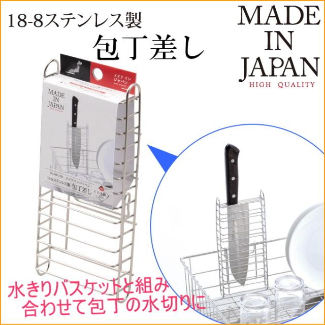 メイドインジャパン 18-8ステンレス製包丁差し (HB-1783) 日本製 収納 水切り ラック カゴ トレー 包丁スタンド シンク