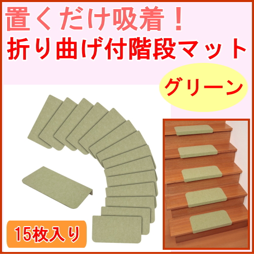 折り曲げ付階段マット グリーン 15枚入り (KD-54) マット 滑り止め すべり止め 階段 転倒防止 防止 ずれない