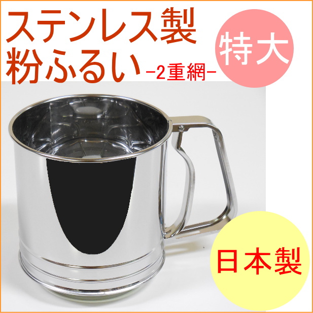 ステンレス製粉ふるい 特大 2重網 (L-0408) 日本製 ステンレス フルイ 粉ふるい器 ふるい器 容器 お菓子