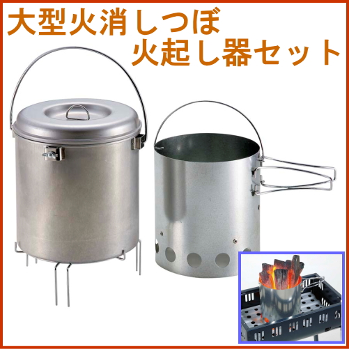キャプテンスタッグ CAPTAIN STAG 大型火消しつぼ火起し器セット (M-6625) バーベキュー用品 火おこし