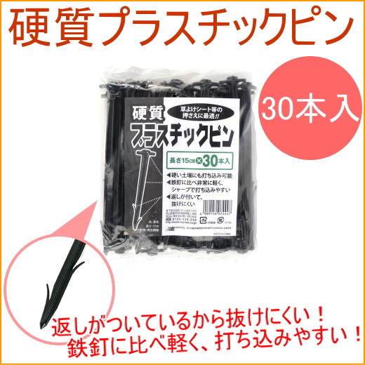 硬質プラスチックピン15cm 黒 30本入り 押さえ具 固定具 止め具 押え 押さえ ピン シート マルチ 防草 草よけ