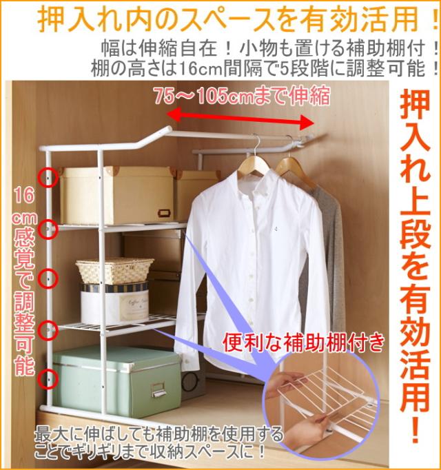 押入れ伸縮ハンガーシェルフ (OHW-40) 押入れ収納 クローゼット収納 収納 押入れハンガー 衣類ハンガー ハンガー