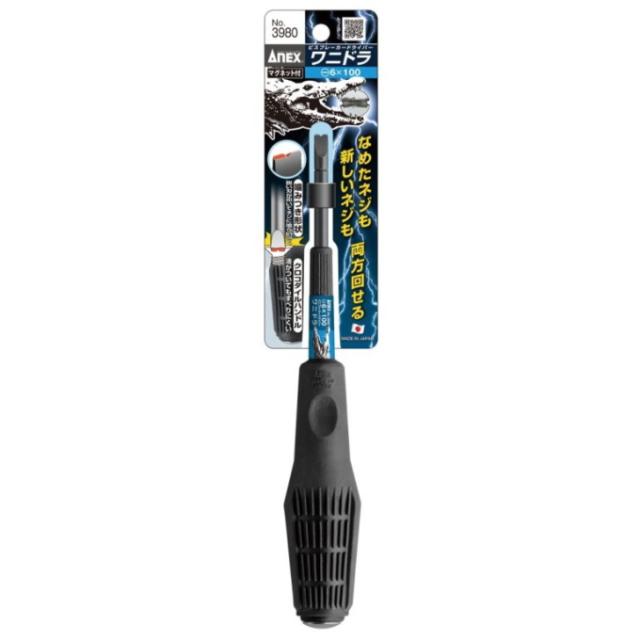 ANEX ビスブレーカードライバー ワニドラ -6×100 No.3980 日本製 ねじ なめたネジ ネジ回し ねじ回し ネジ外し マイナスドライバー 貫通 磁石 マグネット付き ANEX アネックスツール