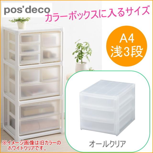 ナチュラ ポスデコ A4浅3段 オールクリア 1個入 日本製 小物入れ 収納BOX ケース 整理 積み重ね 積重ね カタス デスク オシャレ おしゃれ 引出し 卓上 事務 インテリア 滑り止め 小物ケース 小物収納 アクセサリー おもちゃ カラーボックス