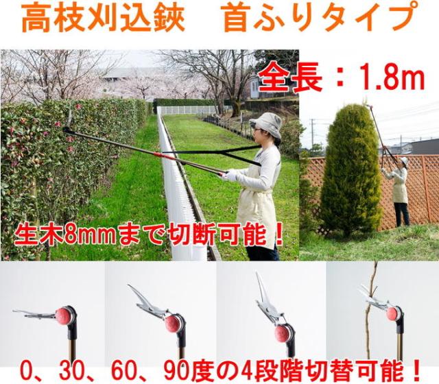 高枝刈込鋏 首振りタイプ 1800mm (PM-1800) 日本製 プルーマン はさみ 刈り込みバサミ 刈り込みはさみ 枝 剪定 軽量