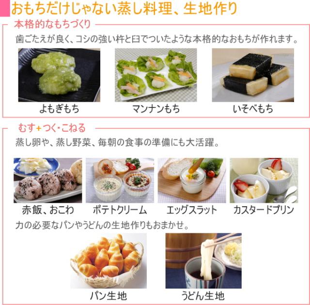 お餅はもちろん、うどんやパン生地、蒸し料理もつくれて一年中大活躍!