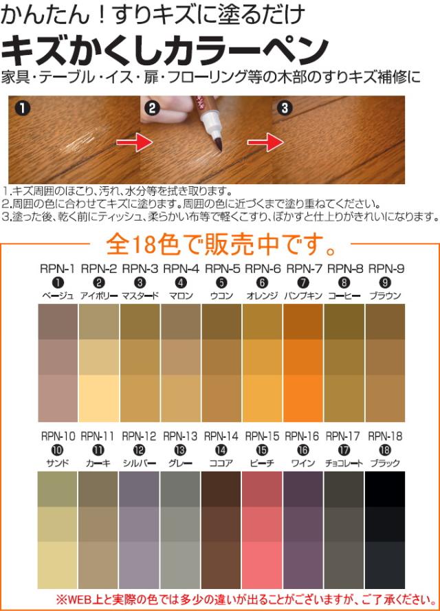 キズかくしカラーペン 1本入り RPN 日本製 DIY 作業用品 補修 リペア スリキズ キズ 色あせ フローリング ネコポス対応