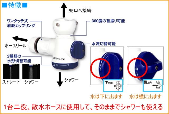 シャワー付き蛇口コネクター (SJC-01) 家庭菜園 家庭農園 庭 洗車 掃除 分岐蛇口 散水 水やり ホース