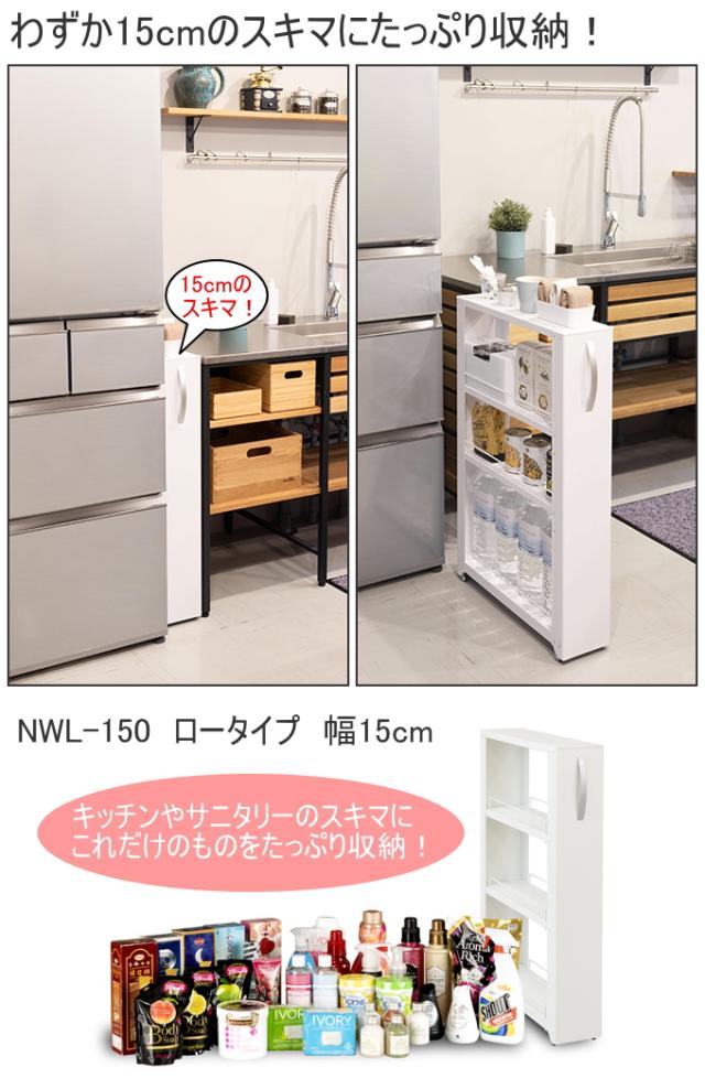 トールワゴン ロータイプ 幅15cm NWL-150 送料無料 収納用品 スリムスットカー 収納 ストッカー ラック ワゴン すき間 隙間 すき間収納 スリム 棚 キッチン 洗面所 脱衣所 ランドリー サニタリー シンク キャスター付 ホワイト ブラック マット塗装 スチール 田窪工業所