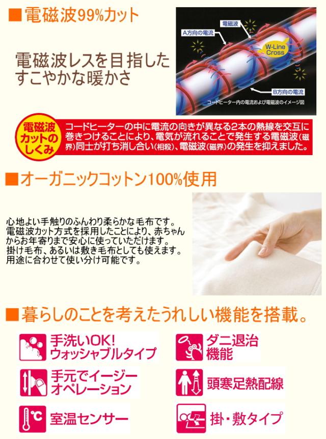電気掛け敷き オーガニックコットン毛布 (ZB-OC102) 送料無料 ゼンケン正規品 電気毛布 掛け敷き電気毛布