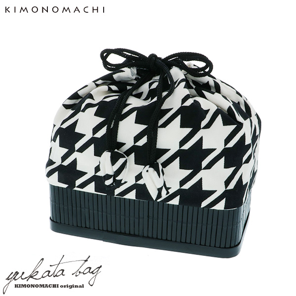 竹籠 巾着単品「黒×白色 千鳥格子」 京都きもの町 巾着バッグ 籠巾着 浴衣巾着
