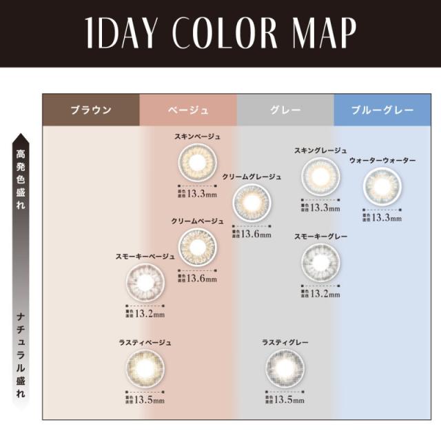 ・カラー展開:クリームベージュ、クリームグレージュ、スキンベージュ、スキングレージュ、ウォーターウォーター、ラスティベージュ、ラスティグレー、スモーキーベージュ、スモーキーグレー