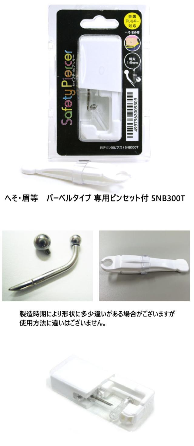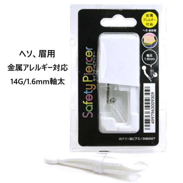 JPS セイフティーピアッサー へそ・まゆ用 14G 1.6mm バーベルタイプ 純チタン製 金属アレルギー対応 5NB300T-HESO ボディピアス