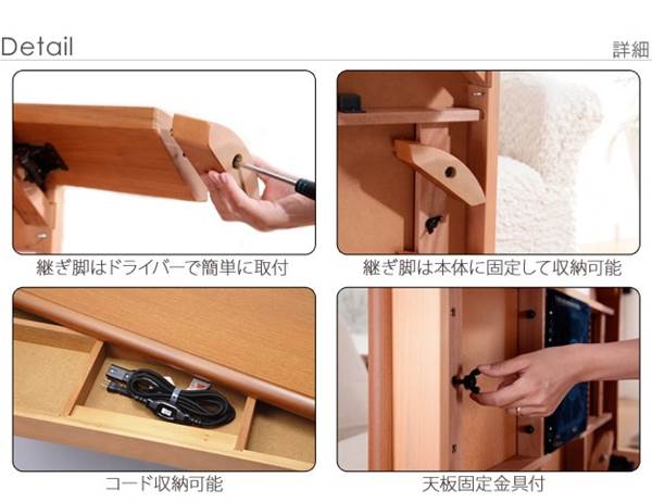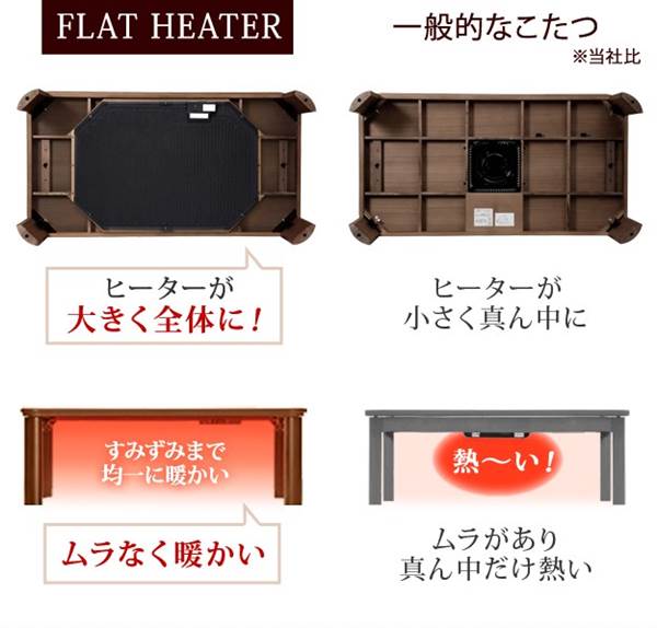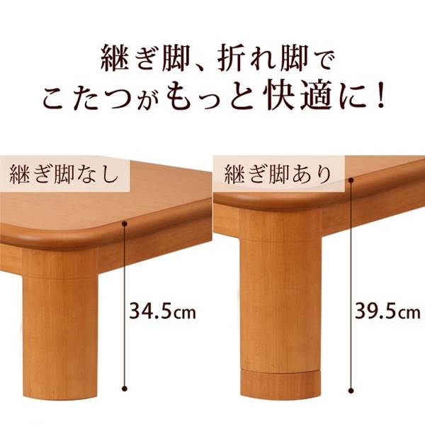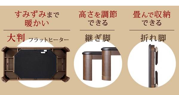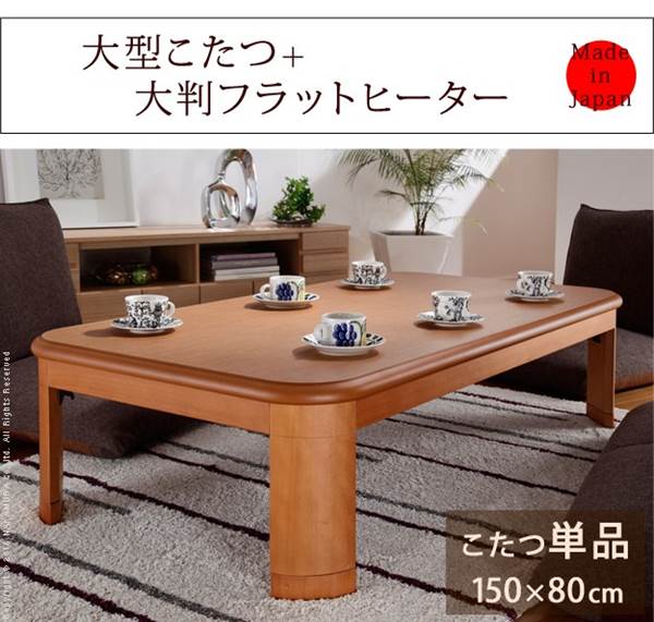 家具調こたつ 長方形 テーブル単品 大判 折れ脚 継ぎ脚付き フラットヒーター 150x80cm