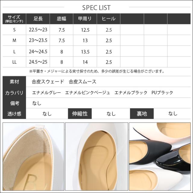 S :足長 22.5-23cm 底幅 7.5cm 甲周り 12.5cm ヒール 2.5cm