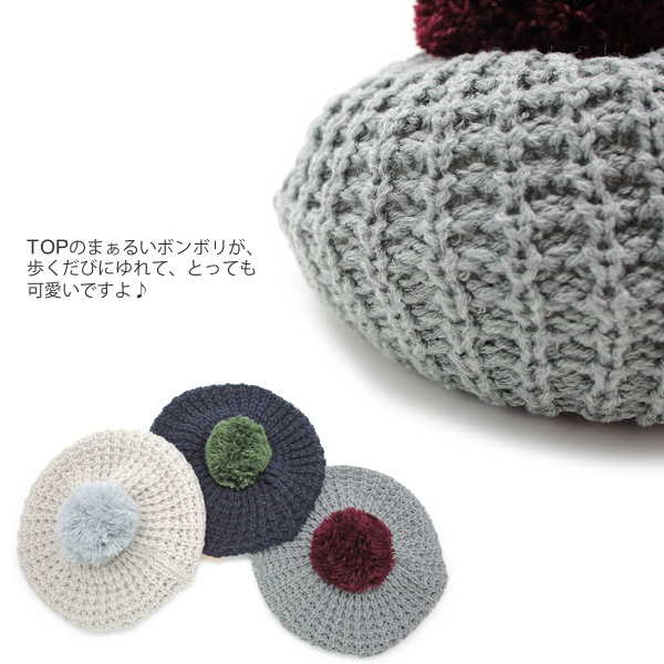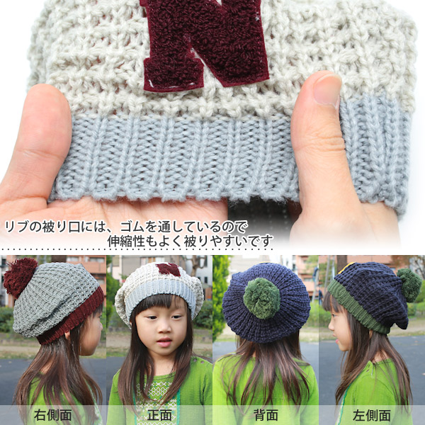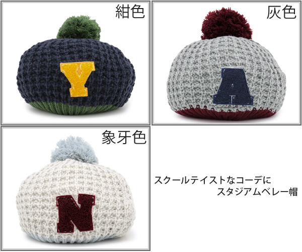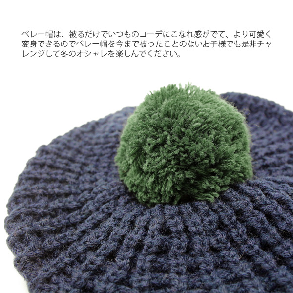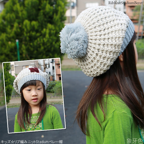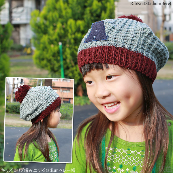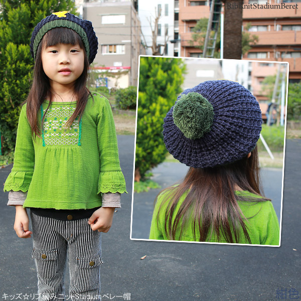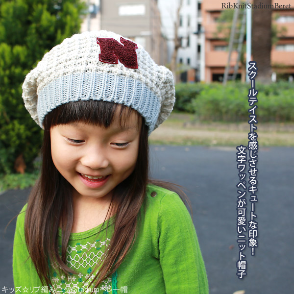 ベレー帽 女の子 [メール便可] キッズ 子供用 男の子 ワッペン 秋冬 ボンボン / キッズ リブ編みニットStadiumベレー帽