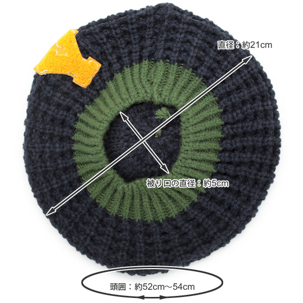 サイズ表記52〜54cm(頭囲:約52〜54cm、被り口の直径:約5cm、直径:約21cm)