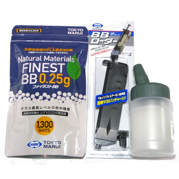 ファイネストBB弾 0.25g 1300発 + ボトル + ローダー [3点セット] シューター&サバイバルゲーム (市/B)♪