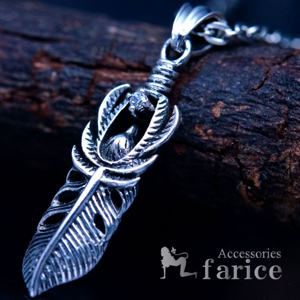 アメリカンイーグル(鷲) フェザー(羽)アレンジデザイン クリアストーン装飾 インディアンジュエリー シルバー925 ネックレス