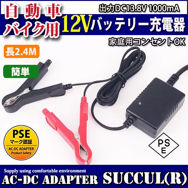 12Vバッテリー用充電器 DC13.8V 1A 最大出力13.8W バッテリーチャージャー DC12V専用 密閉式 鉛 大型にも対応 バイク 自動車 電動自転