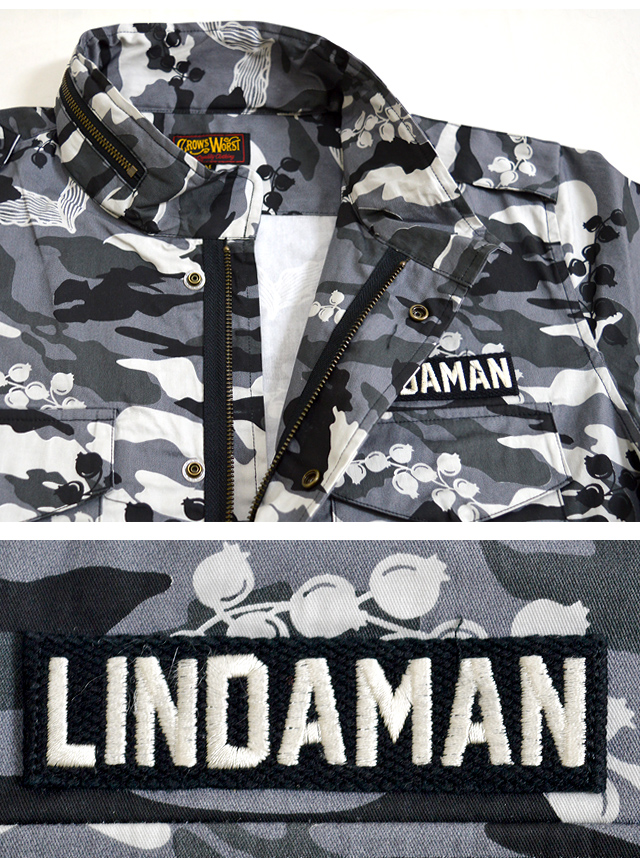 左胸には「LINDAMAN」のロゴ入りのオリジナルワッペンが縫い付けられており、