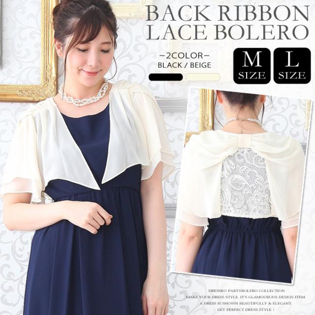 ボレロ 結婚式 ボレロ レース シフォン 半袖 結婚式ボレロ メール便 2SIZE 背中リボンにレース切替えシフォンボレロ 9号サイズ 11号サイ