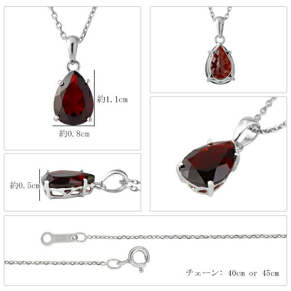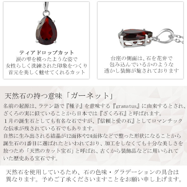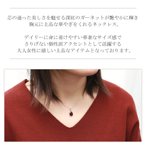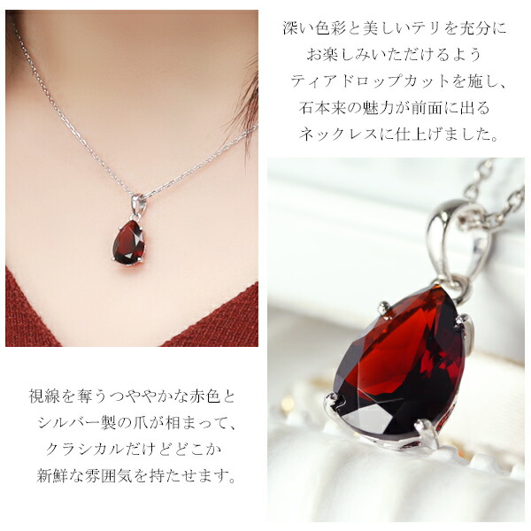 Lucianna ドロップ カット ガーネット シルバー ネックレス レディース 1月 誕生石 ペンダント ジュエリー 女性 プレゼント 天然石 人気