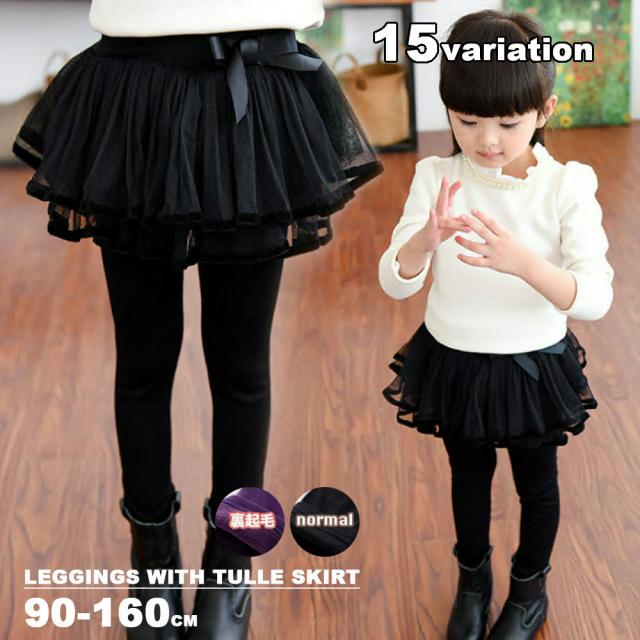 スカッツ スカート付レギンス 子供用 裏起毛 ノーマル チュールレース スカッツ ウエストゴム リボン パイピング キッズ ジュ