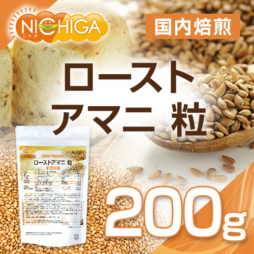 ローストアマニ 粒 国内焙煎 200g 【メール便専用品】【送料無料】 焙煎亜麻仁 フラックスシード SUPER FOOD [05] NICHIGA(ニチガ)