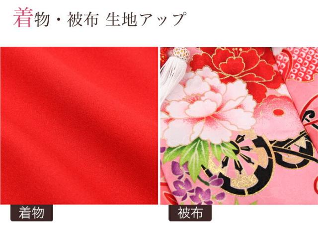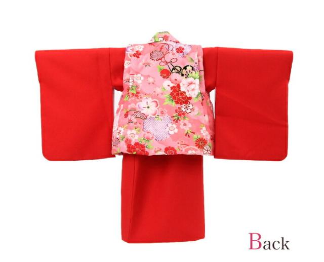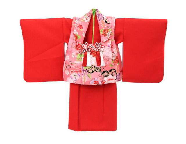 レンタル 女の子 1歳用着物レンタル「赤無地着物にピンク被布(花車と牡丹)」